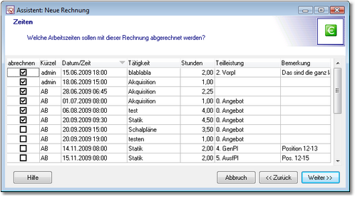 mit dem Assistenten können Sie dann die Fertigstellungsgrade der einzelnen Leistungsphasen angeben.