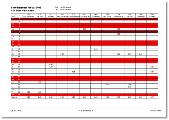 Für die Arbeitszeitlisten können Sie auf vorgefertigte Layouts